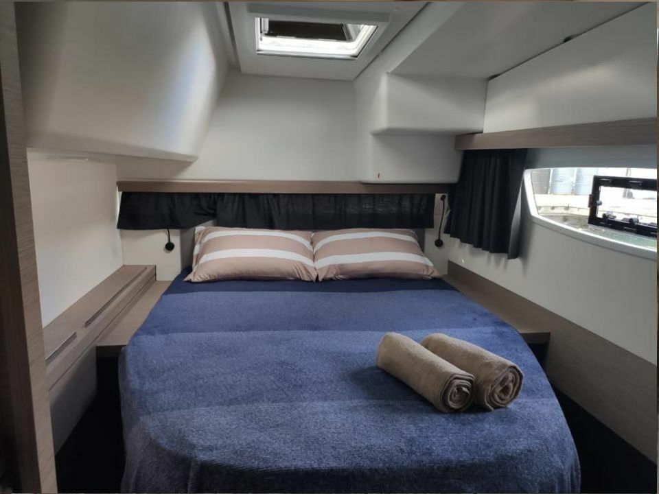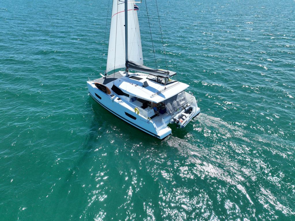 Fountaine Pajot Lucia 40 — это парусный круизный катамаран длиной 11.73 м с 3 пассажирскими каютами и осадкой 1.20 м. Яхта с корпусом из стеклопластика имеет сертификацию CE (A), то есть предназначена для выходов в открытое море.